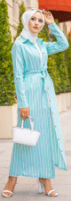 Robe à rayures boutonnée (ouverte) avec ceinture assortie (Vetement été femme voilée) - Couleur menthe - REF. 32880 (25.00 €)
