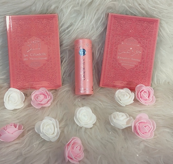 Très joli cadeau à offrir pour une femme pour toute occasion (tel que la fête de l'Aïd ou tout autre événement). Il est constitué de deux livres (en français, arabe et phonétique) et un parfum pour femme :