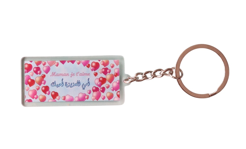 Porte clé "Maman je t'aime" écrit en français et arabe.