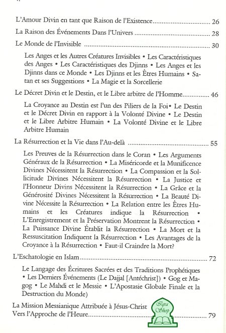 Ce livre révèle la vraie nature de l'Islam et détaille en profondeur les principes essentiels sur lesquels repose la foi islamique. Ce qui rend ce livre unique est probablement la grande piété et le savoir de son auteur, ainsi que son approche originale des questions existentielles que tout un chacun se pose. Ainsi, cet ouvrage s'adresse aux Musulmans qui voudraient redécouvrir leurs sources et raffermir leur foi, tout comme aux non-Musulmans qui souhaiteraient connaître l'Islam dans toute sa dimension spirituelle. En effet, on apprend dans ce livre comment les Musulmans perçoivent Dieu, les êtres spirituels, le Destin (qui inclut le libre arbitre de l'homme), la Résurrection et la vie dans l'Au-delà, l'eschatologie, le rôle de Jésus-Christ vers la fin du monde, la mort et l'âme après la mort, etc. L'auteur démontre la véracité et l'origine divine du Coran, puis expose en détail la vie du Prophète et les raisons pour lesquelles les Musulmans le considèrent comme le meilleur modèle pour l'humanité et comme le guide sur le chemin de la perfection dans tous les domaines. Enfin, ce livre constitue une excellente lecture pour tous ceux qui aspirent à se découvrir et se comprendre à la lumière de la foi, et dans leur relation à Dieu.