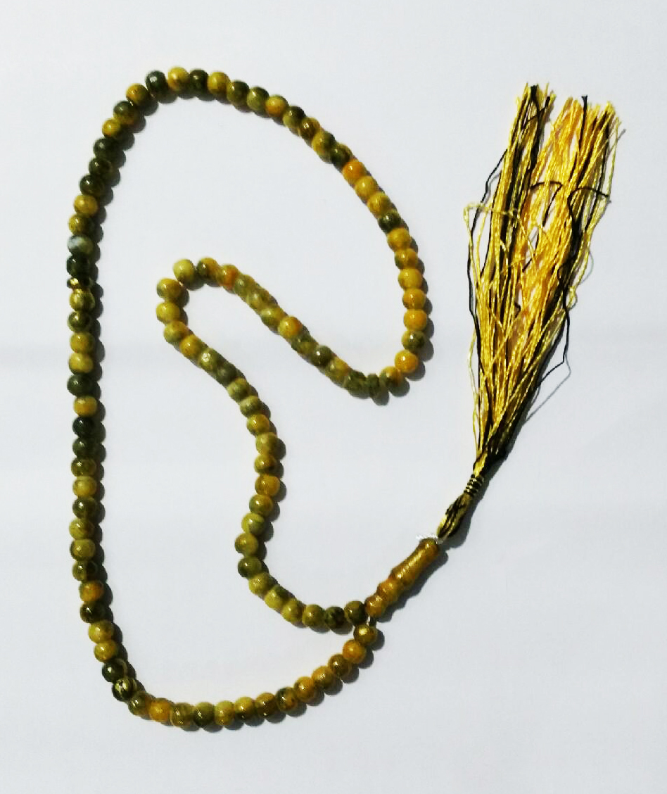 Chapelet (Sebha) à 99 perles de couleur marbré. Avec séparateur toutes les 33 perles. Très léger.