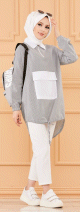Tunique casual avec grande poche à l'avant (Vêtements islamiques modernes) - Couleur des rayures : noir - REF. 36523 (25.00 €)