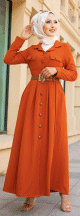 Robe longue casual boutonnée avec sa ceinture (Vetement pour femme musulmane) - Couleur brique - REF. 33928 (35.00 €)