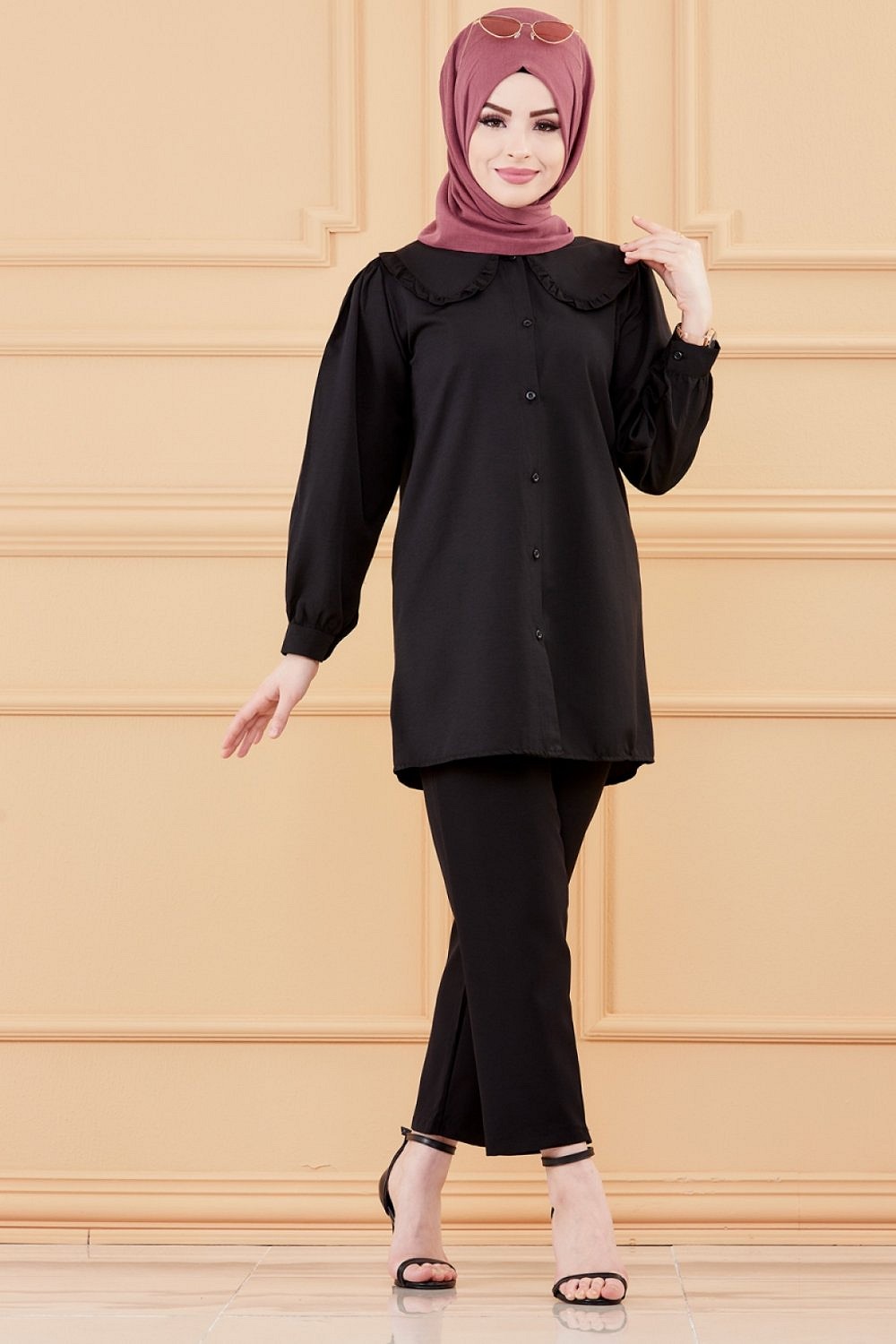 Tunique-chemise style classique pour femmes (Vetements Chic Modeles Hijab - Mode musulmane) - Couleur noir