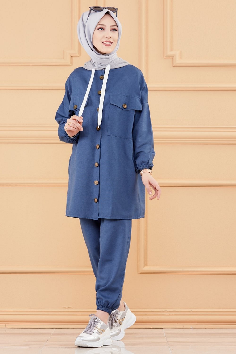 Ensemble casual veste ample et pantalon pour femme (Modest Fashion 2025) - Couleur bleu indigo Vetement & Accessoire