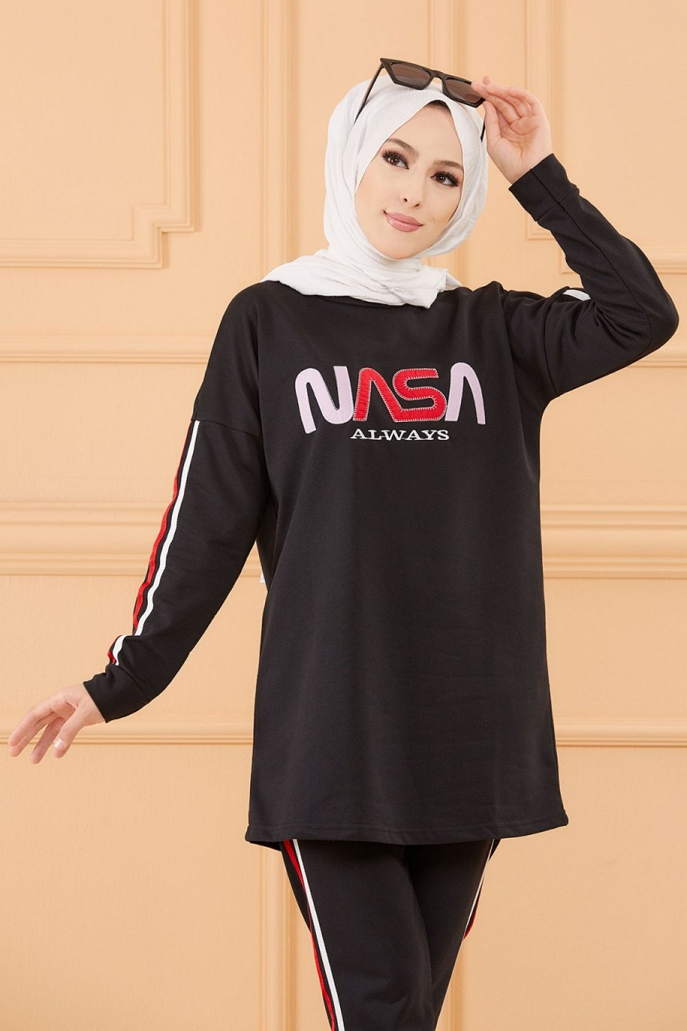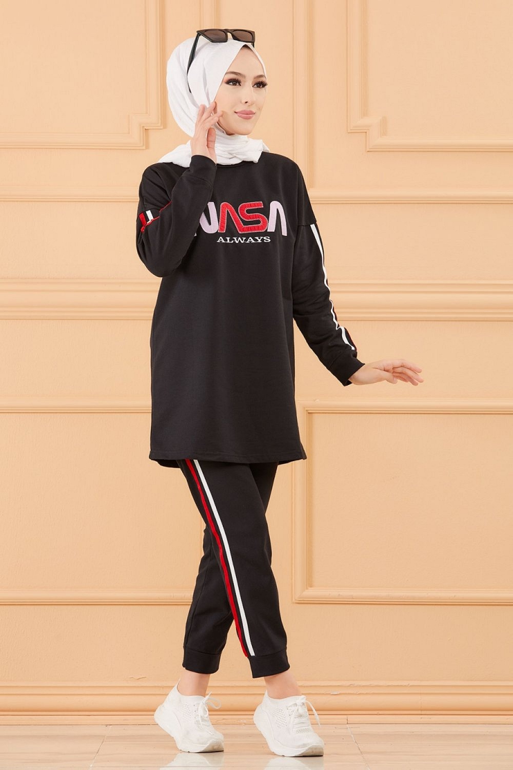 Ensemble survêtement brodé "Nasa" pour femme (Tenue de sport pas cher pour Hidjab - Boutique musulmane) - Couleur noir Vetement & Accessoire