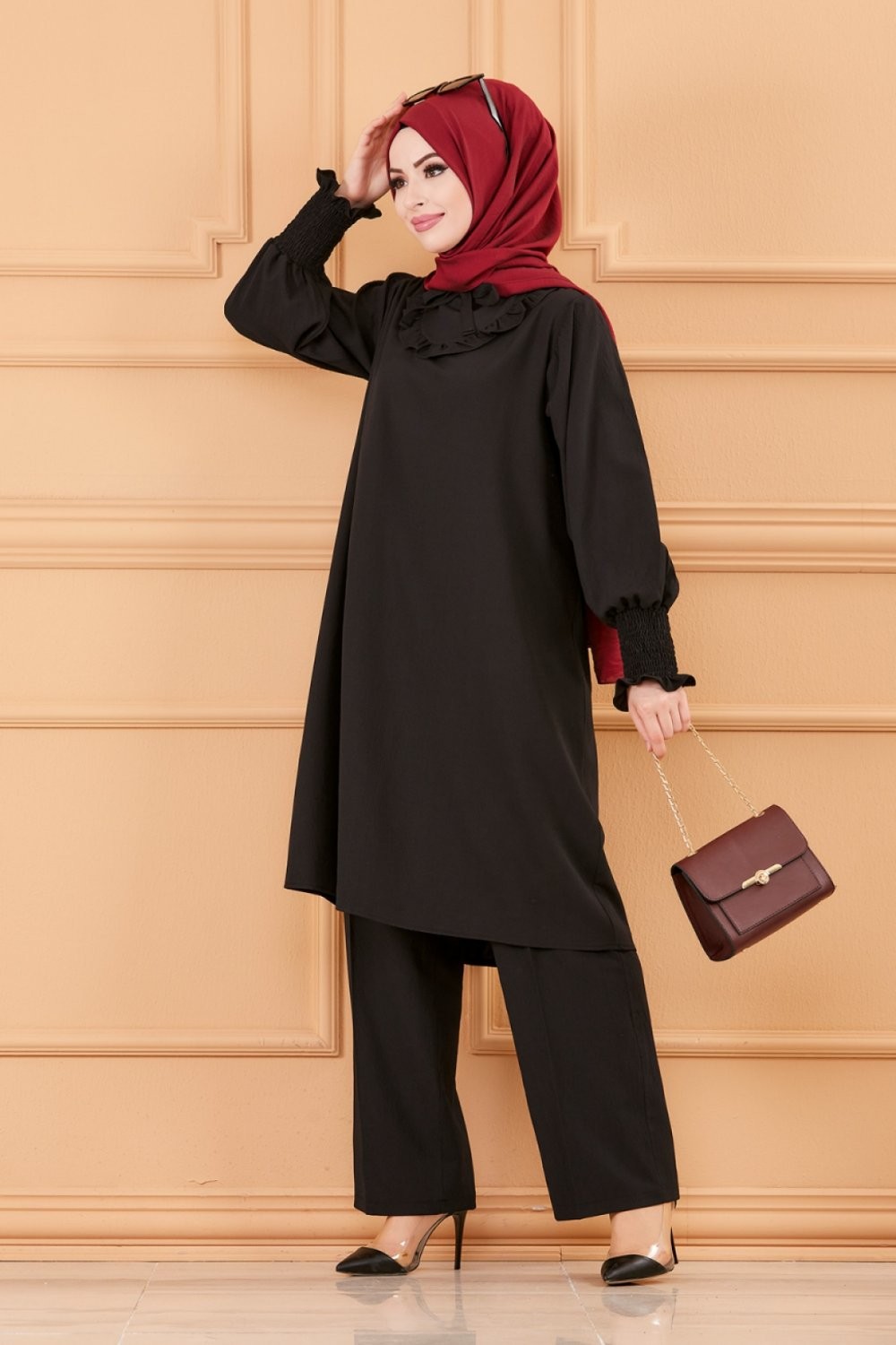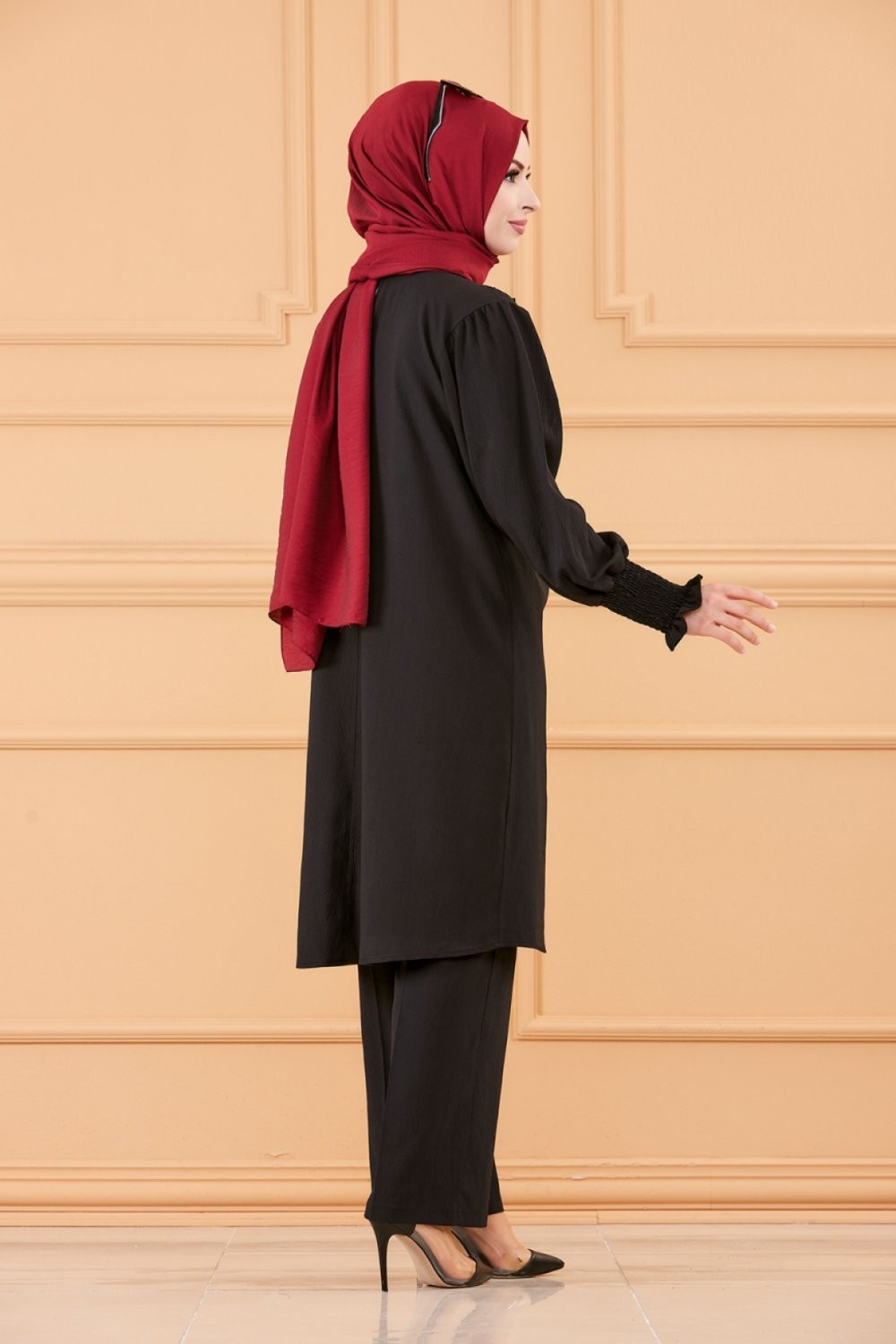 Ensemble chic tunique et pantalon style habillé (Boutique musulmane pour femme voilée) - Couleur noir Vetement & Accessoire