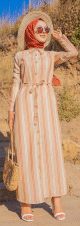Robe chemise longue d'été à rayures (Vetement d'été pour femme voilée) - Couleur beige, rouille et blanc - REF. 33920 (25.00 €)