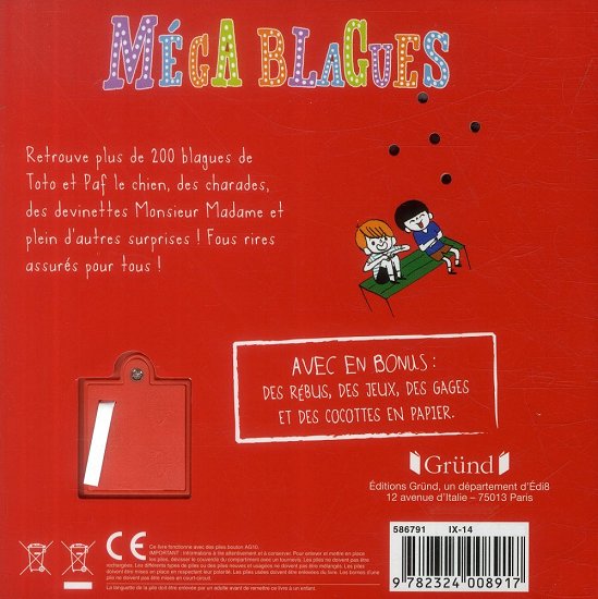 Retrouve dans ce livre bourré d'humour et de bonne humeur des blagues de Toto et Paf le chien, des charades, des devinettes Monsieur Madame, des défis, des cocottes en papier et plein d'autres surprises ! Fous rires assurés pour tous ! Sur la couverture, une puce sonore qui déclenchera l'hilarité à coup sûr !