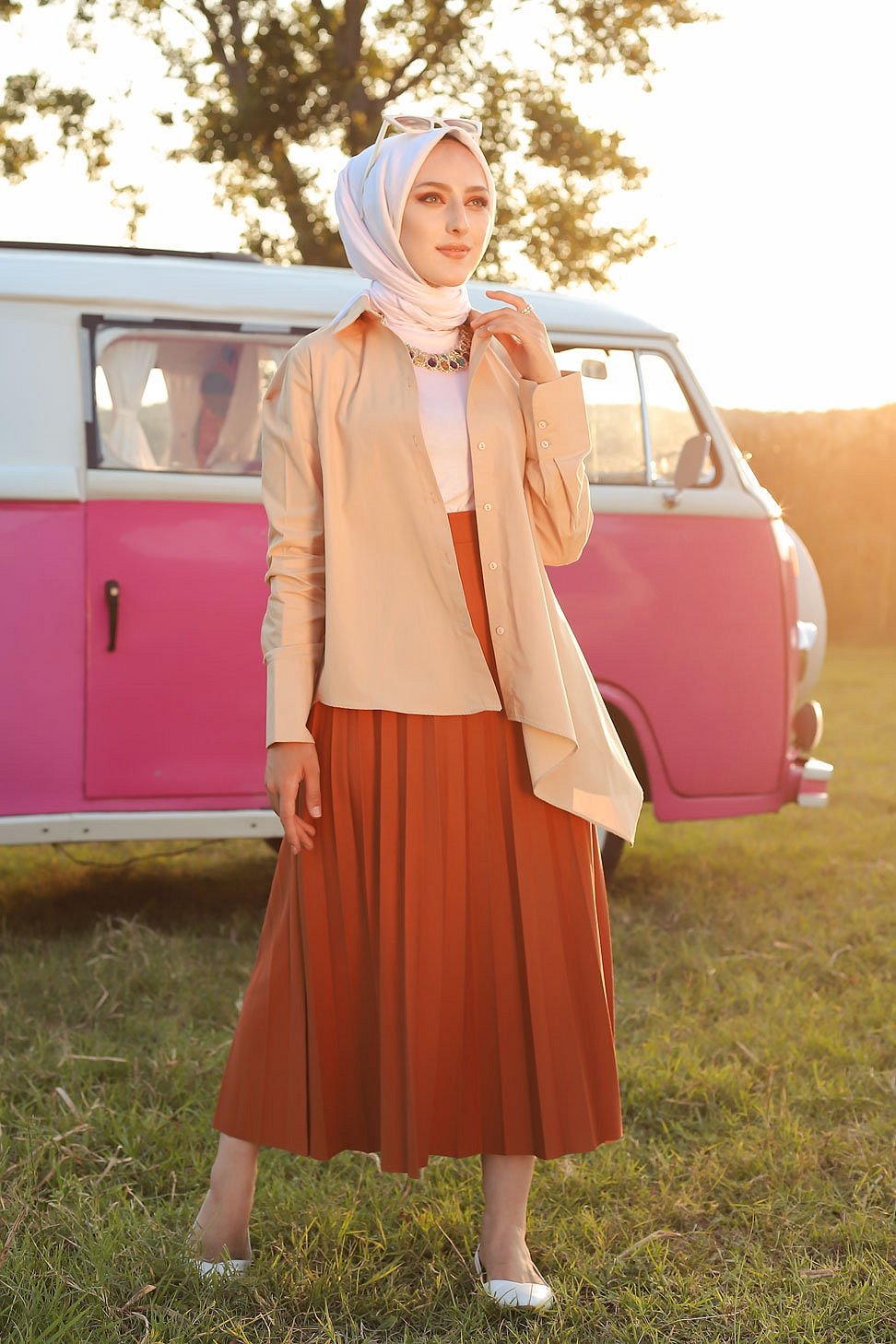 Jupe plissée pour femme - Couleur rouille Vetement & Accessoire