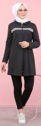 Tunique veste zippée Sportswear pour femme (Hijab Sport) - Couleur gris foncé (Anthracite) - REF. 32189 (20.00 €) - En Promotion à 14.90 €