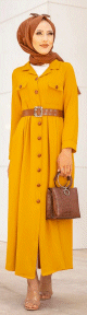 Robe longue casual boutonnée avec sa ceinture (Vetement hijab chic pour femme) - Couleur Jaune moutarde - REF. 33925 (35.00 €)