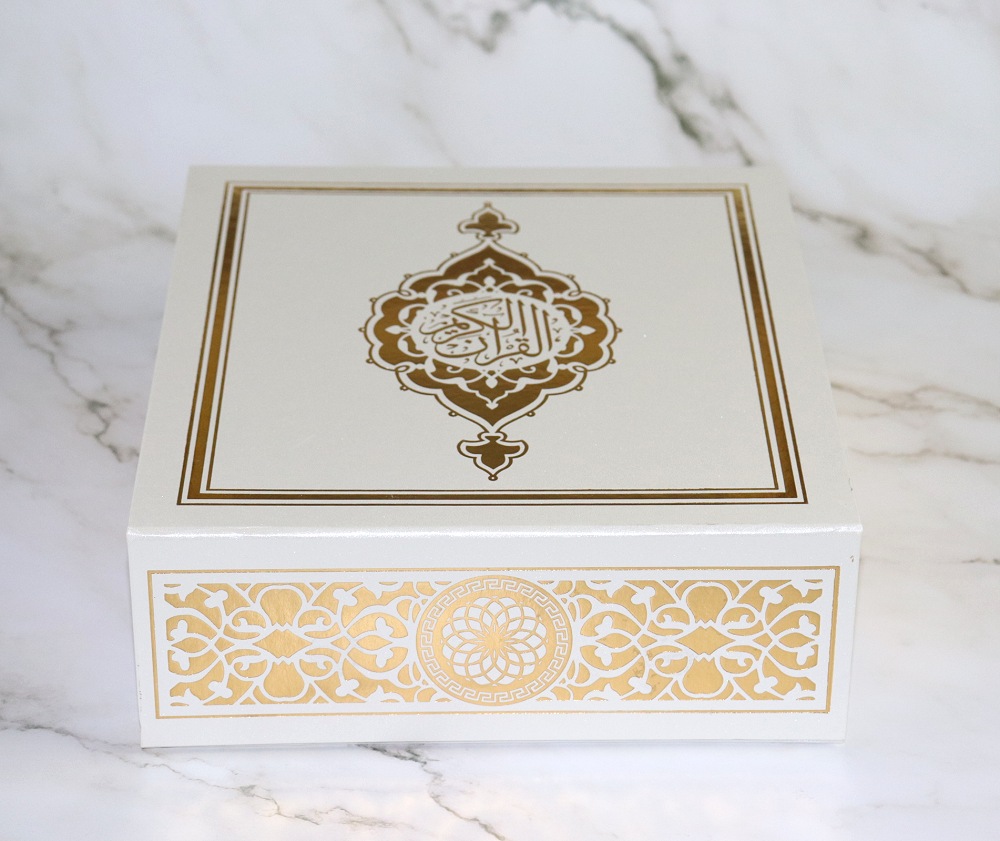 Grande boite cadeau rigide avec fermeture magnétique et inscription "Le Saint Coran" - Couleur Crème dorée Deco & Cadeau