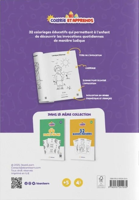 32 coloriages éducatifs qui permettent à l'enfant de découvrir les invocations quotidiennes de manière ludique.