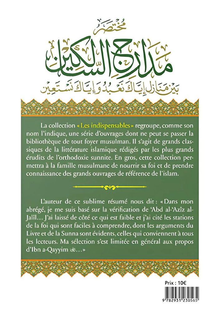 L’auteur de ce sublime résumé nous dit : « Dans mon abrégé, je me suis basé sur la vérification de ‘Abd al-‘Azîz al-Jalîl… J’ai laissé de côté ce qui est faible et j’ai cité les stations de la foi qui sont faciles à comprendre, dont les arguments du Livre et de la Sunna sont évidents, celles qui conviennent à tous les lecteurs. Ma sélection s’est limitée en général aux propos d’Ibn al-Qayyim… »