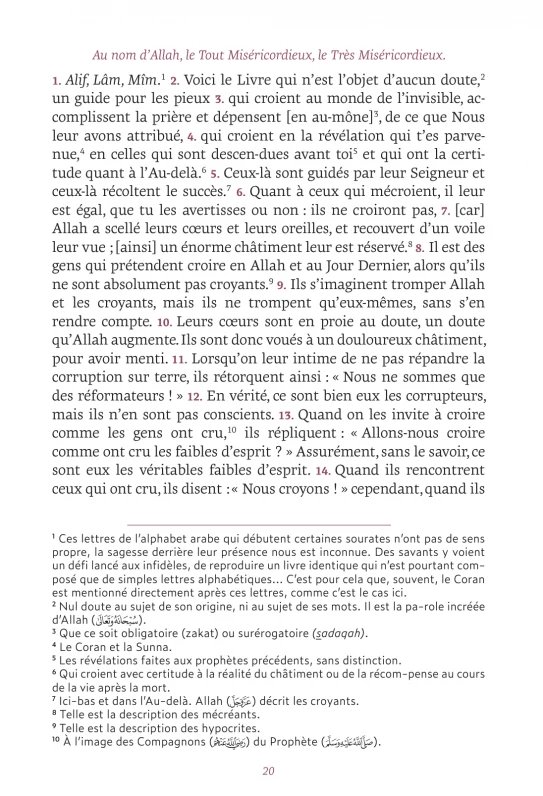 Chaque verset est soigneusement traduit et accompagné d’explications claires, afin de rendre le texte compréhensible sans sacrifier la profondeur spirituelle. Vous découvrirez non seulement le sens littéral des versets, mais aussi leur contexte historique et culturel, ce qui vous permettra de mieux saisir les enseignements divins. Des annotations précieuses vous guideront tout au long de votre lecture, facilitant l’accès à la sagesse contenue dans le Coran.