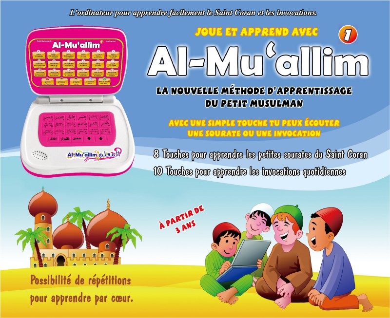 Retrouvez les ordinateurs et tablettes Al-Muallim permettant à l'enfant de découvrir de façon ludique l'alphabet arabe, les invocations et le Coran. |