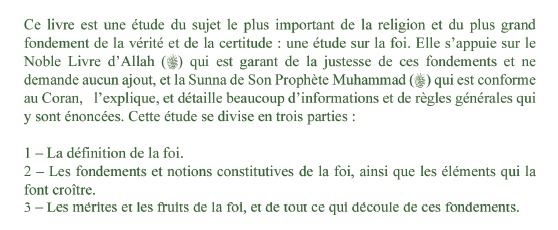 Ce livres écrit par le savant cheikh As-Sa'dî se divise en trois parties :
