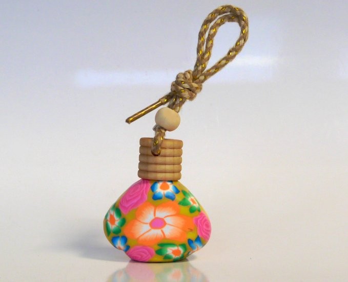 Joli flacon en verre avec bouchon bois pour diffuser le parfum de façon harmonieuse, à suspendre dans la voiture (au rétroviseur par exemple). Peut être utilisé également dans une armoire ou tout autre endroit à parfumer.