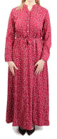 Robe longue quatre saisons avec manches longues retroussées - Couleur Bordeaux à motifs fleuris gris clairs - REF. 28680 (28.00 €)