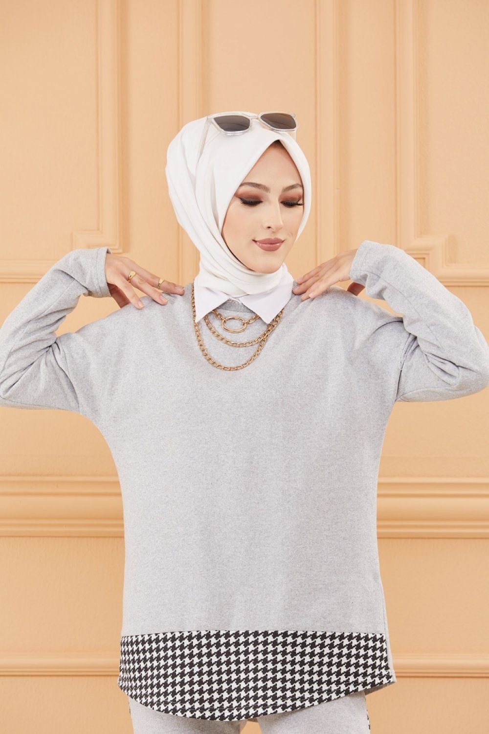 Survêtement avec extension blanche - Ensemble Sweat à capuche imprimé (Boutique Hijab France - Vente en ligne de vêtements) - Couleur gris clair - REF. 35677 (29.90 €)
