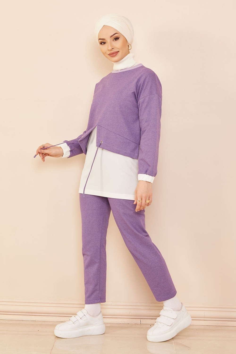 Ensemble décontracté tunique et pantalon pour femme - Couleur blanc et lilas Vetement & Accessoire