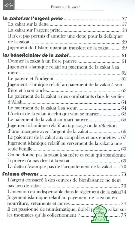 Ce Livre se veut une exhortation a l'intention des musulmans, afin de leur rappeler l’importance de la zakat, qui est négligée malheureusement par un grand nom6re d’entre eux. Nombreux, en effet, sont ceux qui ne s'en acquittent pas convenablement alors qu'il s'agit d'un des cinq piliers de l’Islam. Parmi toutes les prescriptions religieuses, la zakat est l’une de celles qui témoignent le mieux de la sollicitude de l'Islam pour ses fidèles...