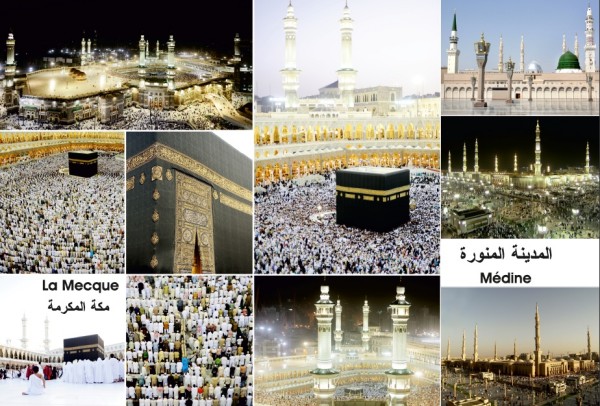 Puzzle sous forme de mosaïque de photos de La Mecque (partie gauche) et de Médine (partie droite).