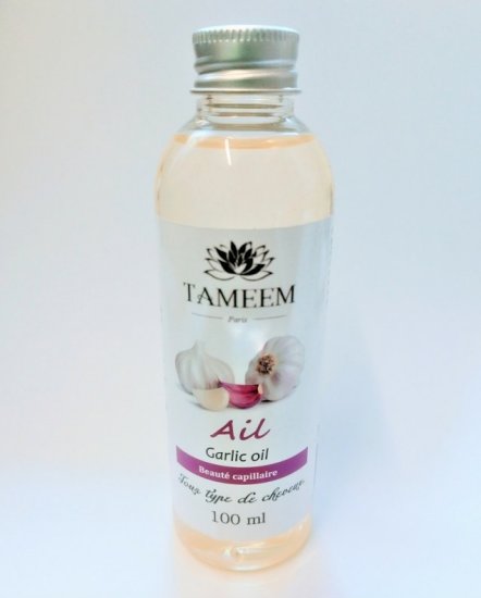 L’huile d'Ail TAMEEM. Entretien des cheveux. Appliquez sur le cuir chevelu en massant de façon circulaire. Laisser agir toute la nuit et laver avec un shampoing naturel. Ne contient ni conservateurs, ni produits chimiques.