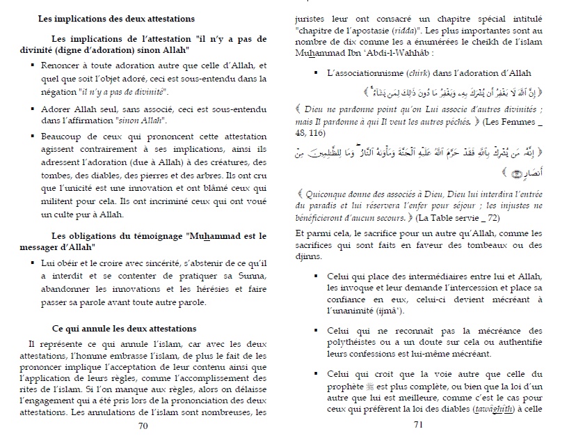 • Ce livre expose clairement les croyances contraires à l’islam des différentes sectes de l’islam comme les Kharijites, les mou‘tazila, les mourji’a ou encore les soufis et met en garde contre leurs innovations.