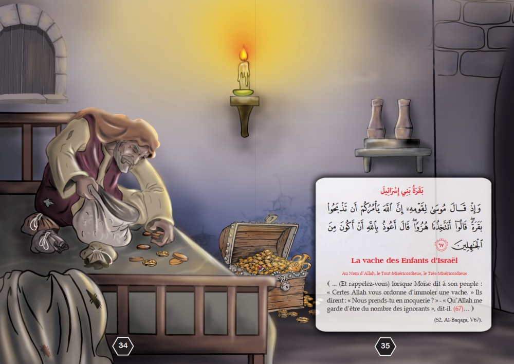Remarque : Dans ce livre les prophètes sont représentés par une lumière (et ne sont pas dessinés). Uniquement les personnages tel que Qârûn et Pharaon sont représentés.