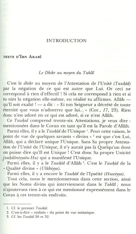 S'appuyant sur l'oeuvre de Ibn 'Arabi, Charles-André Gilis décompte 36 formules coraniques relatives au Tawhid, regroupant les deux Tahlil du verset 18 de la Sourate Al 'Imran comme une seule attestation de l'unicité divine. L'auteur rattache ces formules à un symbolisme dont les enseignements ésotériques, transmis par René Guénon, permettent de dégager la signification universelle.