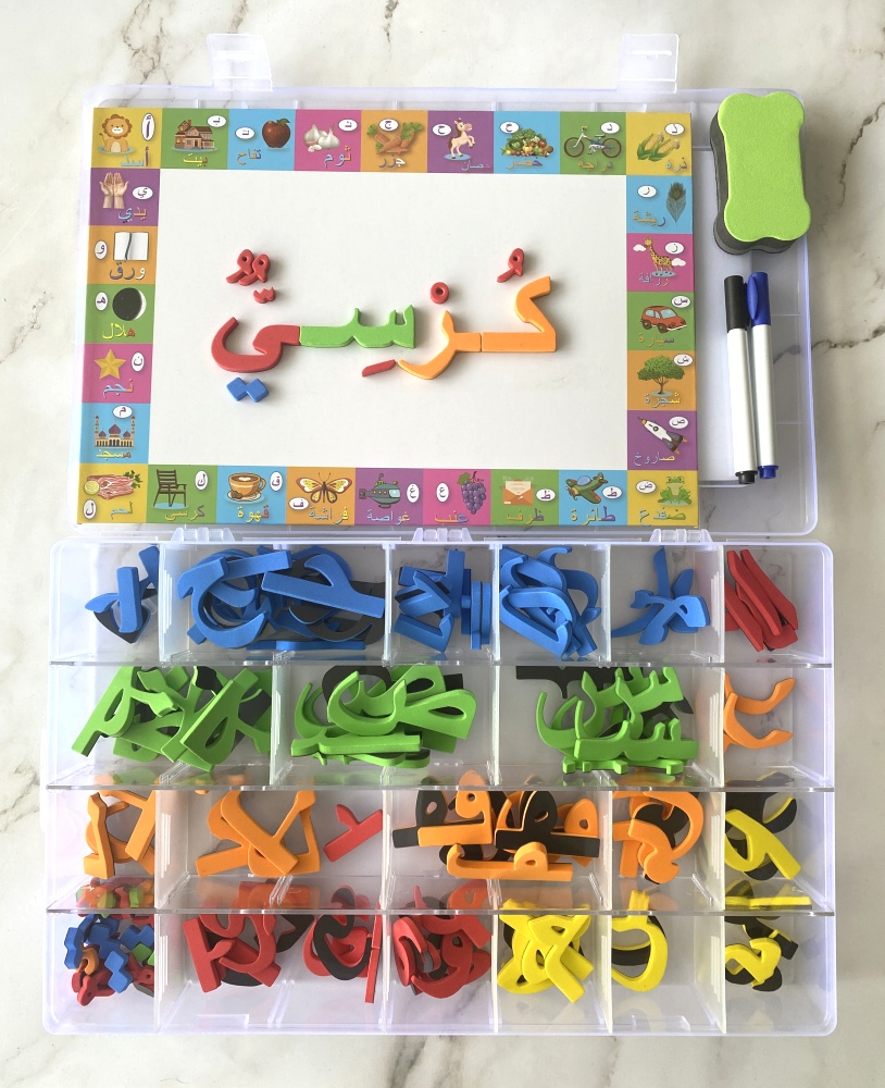 Mallette pédagogique très complète pour l'apprentissage de la langue arabe (lecture et écriture)... Pratique pour les écoles d'arabe et pour les parents à la maison pour apprendre à leur enfants la langue arabe de façon moderne et ludique...