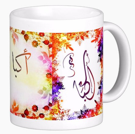 Voir l'ensemble des mugs dédiés au prénoms calligraphiés en arabe (Mugs prénoms arabes - Mugs prénoms français)