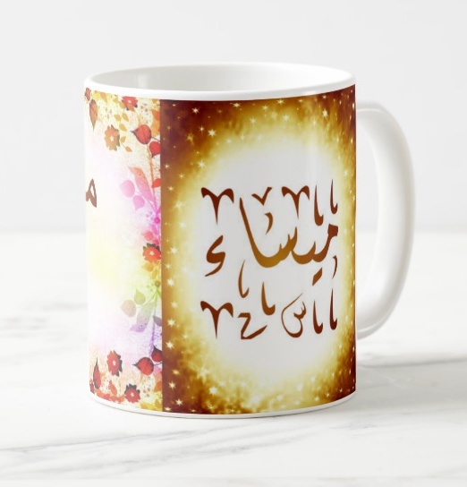 Voir l'ensemble des mugs dédiés au prénoms calligraphiés en arabe (Mugs prénoms arabes musulmans masculins - Mugs prénoms français)