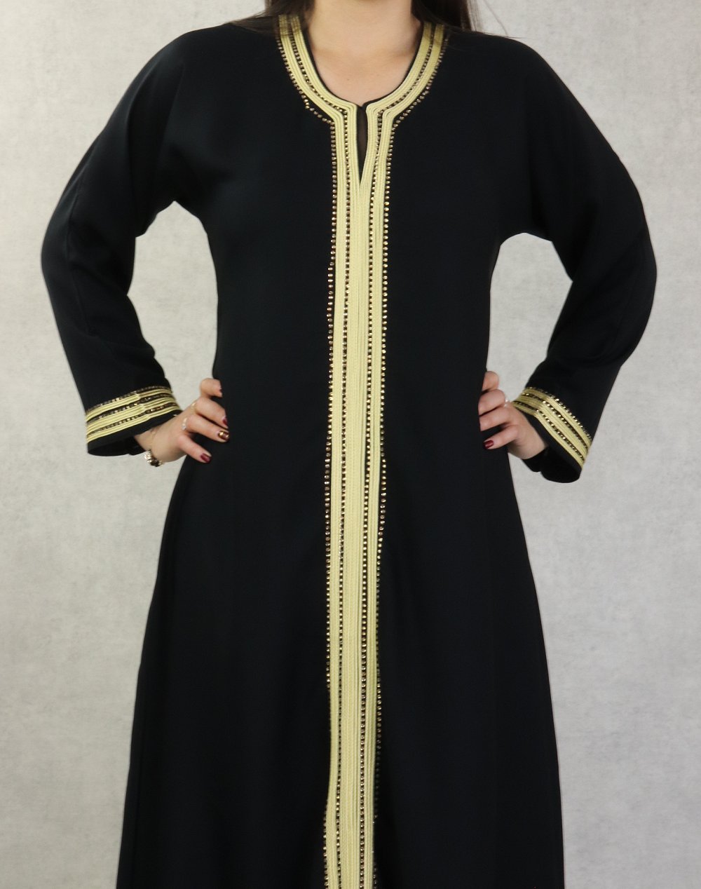 Abaya Dubai de couleur noire fournie avec son châle assorti.