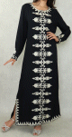 Robe Marocaine / Gandoura à manches longues avec broderie blanche - Couleur Noir - REF. 29803 (29.90 €)