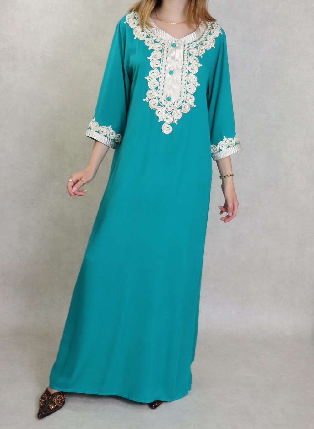 Robe orientale confortable et décontractée avec broderies - Couleur vert émeraude - REF. 37677 (19.90 €)