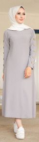 Robe longue à col rond avec broderie brillante sur le devant et au niveau des poignets.