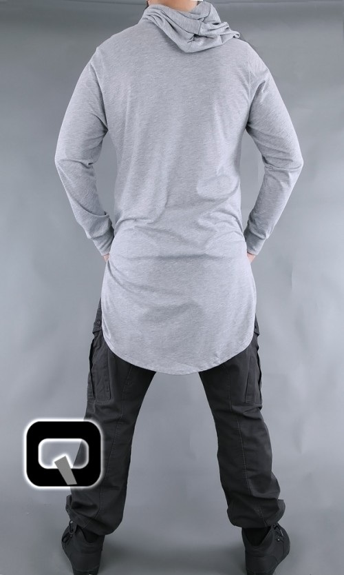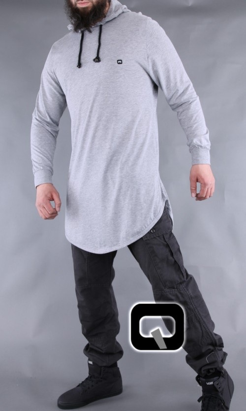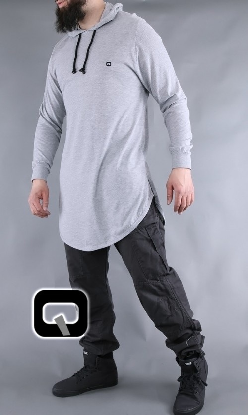 T-shirt uni à capuche à manches longues, bas légèrement arrondi, petites fentes sur les côtés...