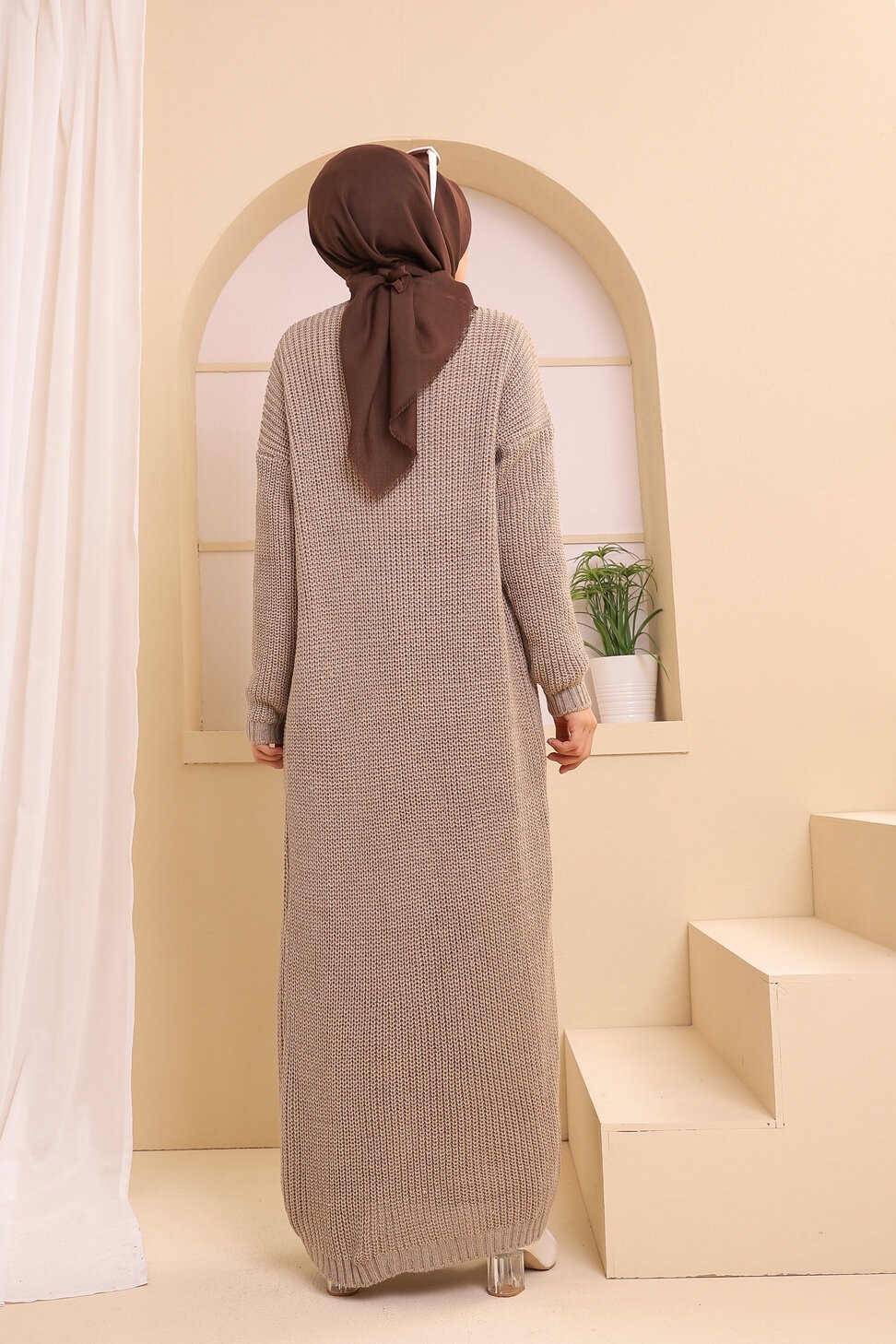 Cardigan maxi-long tricoté en grosses mailles (Vêtement Hijab Automne Hiver) - Couleur beige - REF. 37728 (24.90 €)