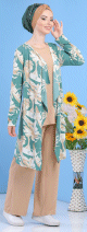 Ensemble deux pièces : veste motif léopard et robe couleur pistache avec collier assorti (Vetement hijab musulmane chic) - REF. 33139 (39.00 €)